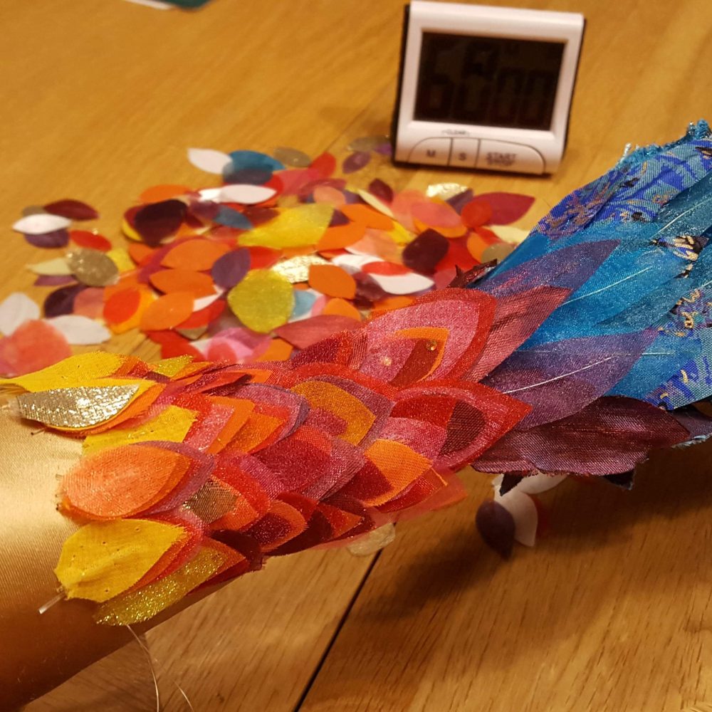 I made yet more feathers as I knew the ‘pile them high’ method I’d be using would use masses of feathers.