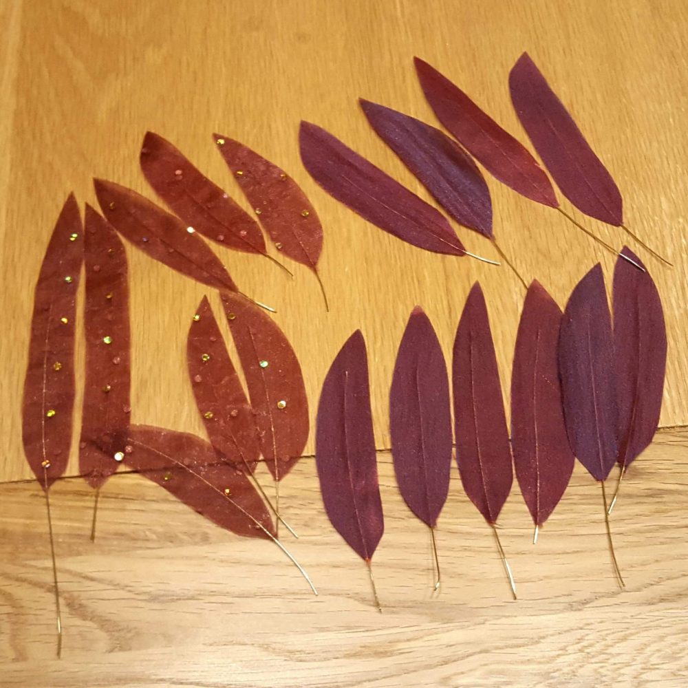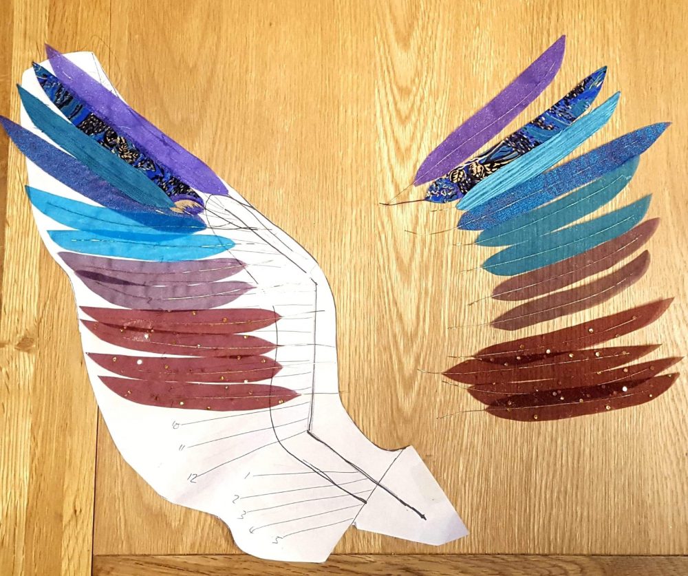 After weeks of deliberation about the shape and colouring, I began making Princess Sophia’s wing feathers.