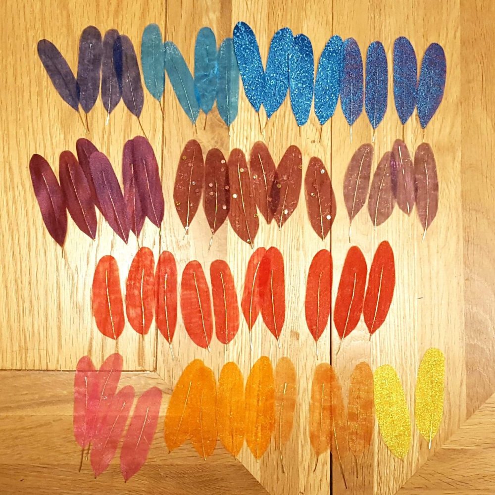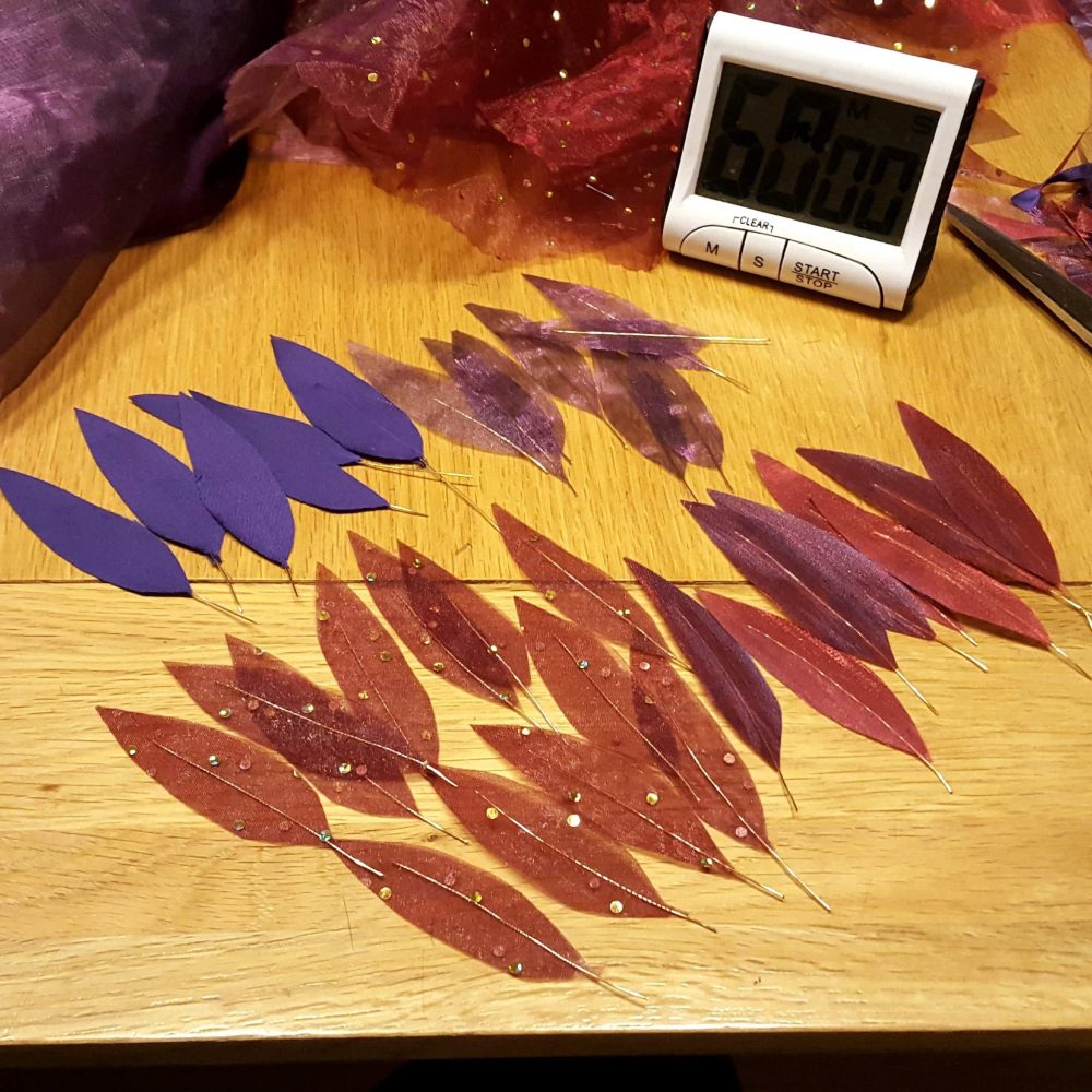 I created an additional 40 feathers to add to my collection of covert feathers, in preparation for adding to the underside of Princess Sophia’s wings tomorrow.