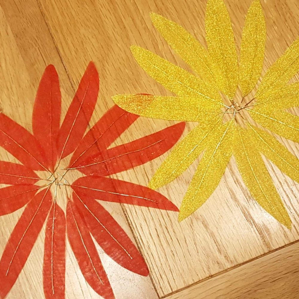 I made yet more feathers and finally found a colour combination I liked, so I began sewing them into place.