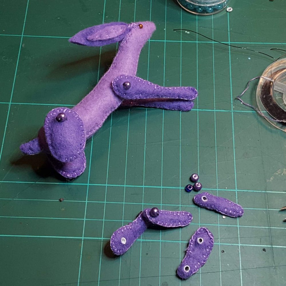 Working on and completing my dragon seems to have broken the Procrastination Pixie’s hold on me. When I returned to work on my hare late last evening after a long and tiring day, he was nowhere to be seen. Or heard!