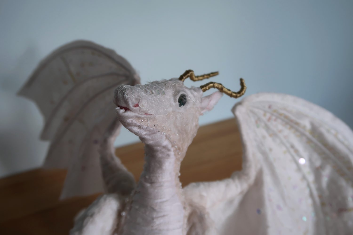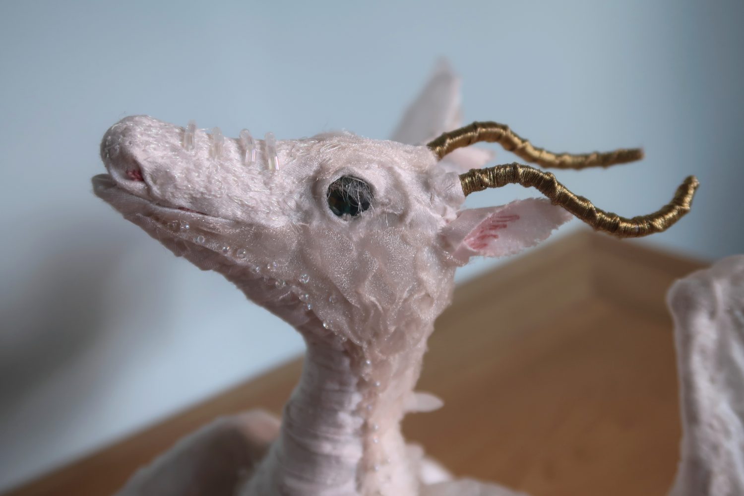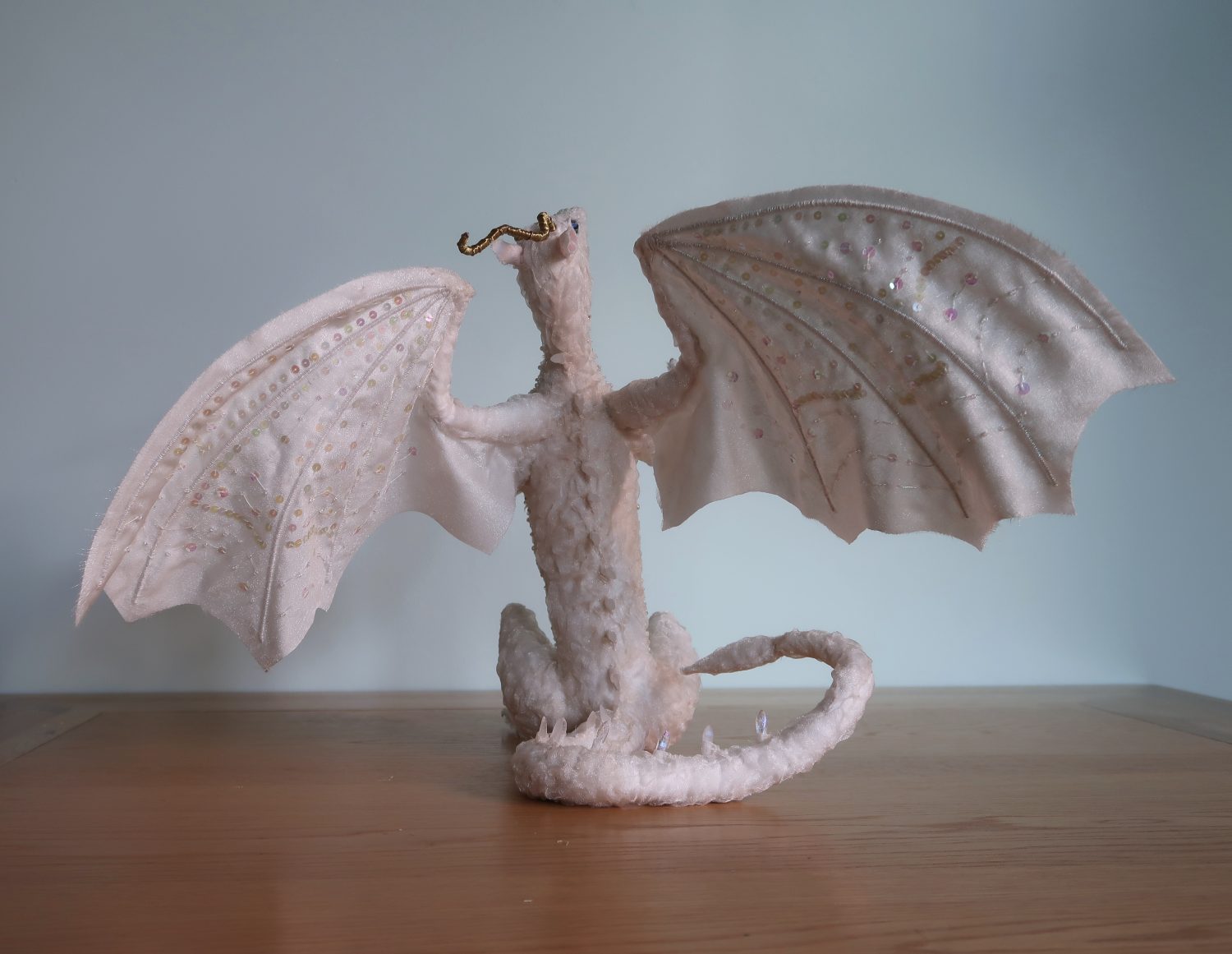 On Thursday I had an important deadline looming so I spent the whole day finishing my winter dragon. He needed to be complete in time to be included, as part of the New Forest Textile Groups display, at this weekends Brockenhurst Needlework Fiesta.