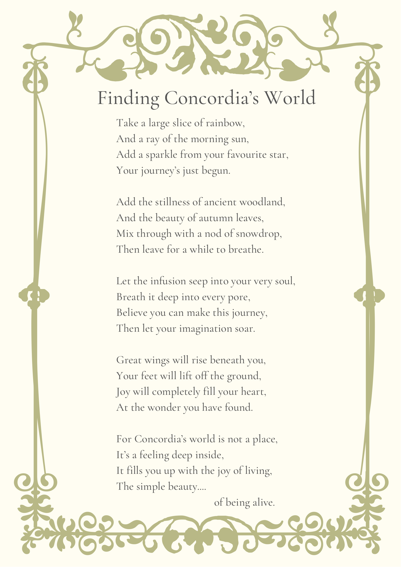 One of her passions growing up was sewing, so after illness brought an end to her 30 year career in civil engineering and transport planning, she returned to creativity to aid her recovery. It was during this period that she rediscovered long forgotten childhood dreams and Concordia’s World came to be.